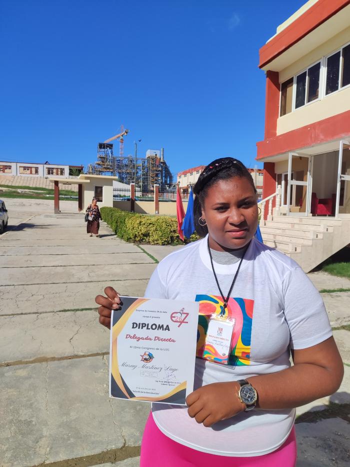 Maray expresó a Granma la alegría de poder representar a los jóvenes cementeros en la cita de abril del próximo año y aseguró llevar al cónclave juvenil los planteamientos de sus compañeros y de los jóvenes del territorio.