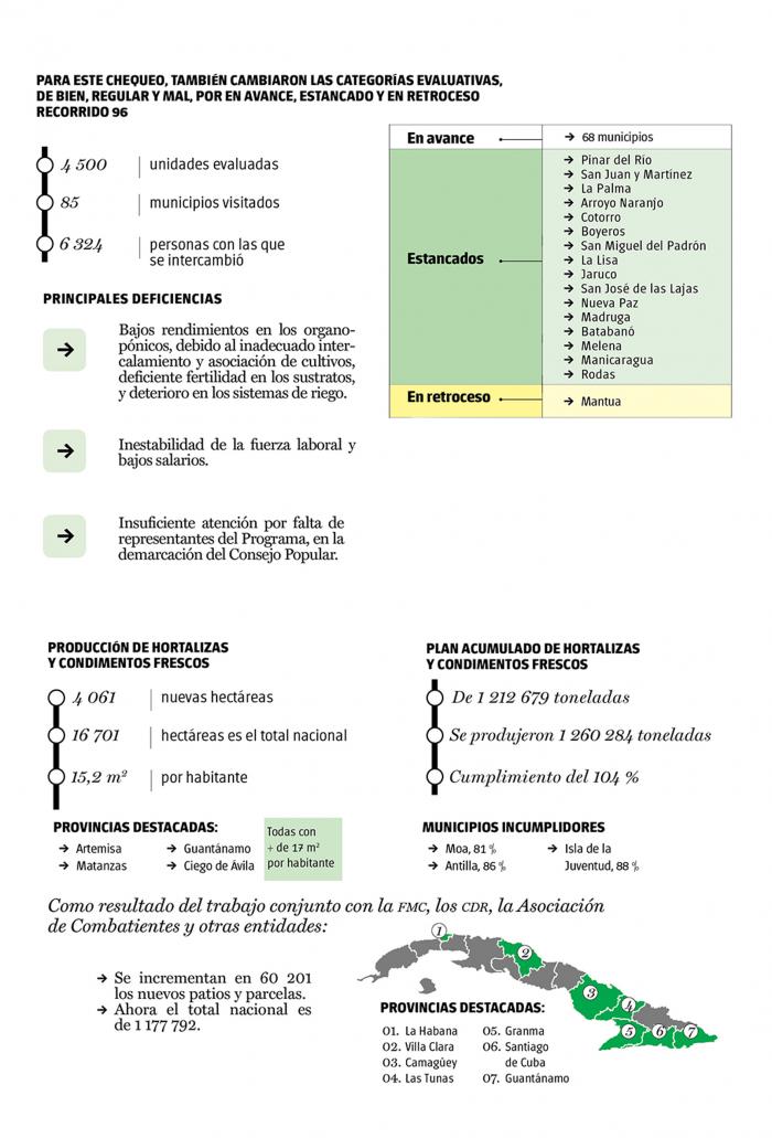 Para el programa de la Agricultura Urbana, Suburbana y Familiar, las seis acciones aprobadas por el primer ministro, Manuel Marrero Cruz, y por el titular de la Agricultura, Ydael Pérez Brito, para incrementar la producción de alimentos, son el centro de sus esfuerzos. Por ello, el Grupo Nacional que atiende este vital movimiento, durante su recorrido de chequeo No. 96, fijó su objetivo en el cumplimiento de esas encomiendas.