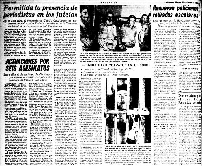 El Comandante Camilo Cienfuegos, en aquel momento jefe de las fuerzas de Mar, Tierra y Aire, que radicaban en la provincia de La Habana, se reunió el 12 de enero con un grupo de periodistas en su despacho del edificio del Estado Mayor del Ejército, en el Campamento Militar de Columbia (hoy Ciudad Libertad), a los que les dijo que «estaban en su entera libertad de acudir y presenciar los juicios, por los Tribunales Revolucionarios, contra los acusados por delitos cometidos contra el pueblo durante la pasada tiranía».
