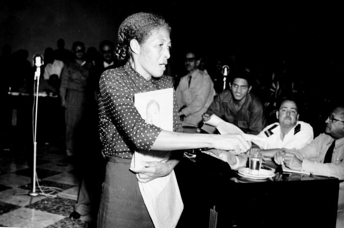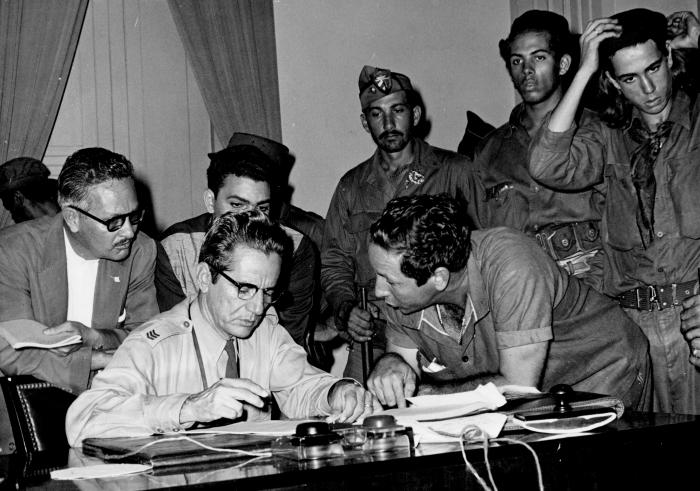 En esa reunión se encontraba presente el señor Jules Dubois, presidente de la Comisión de Libertad de Prensa de la Sociedad Interamericana de Prensa (SIP), y corresponsal transitorio en Cuba del periódico Chicago Tribune, a quien el Comandante Cienfuegos le entregó un documento que lo autorizaba a visitar a los acusados en las cárceles militares, para que comprobara, personalmente, el trato que recibían.