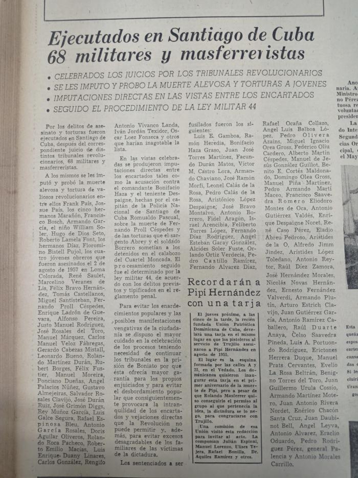 También se dio a conocer una relación con los nombres de algunas de las víctimas que fueron ultimadas por estos perversos asesinos batistianos.