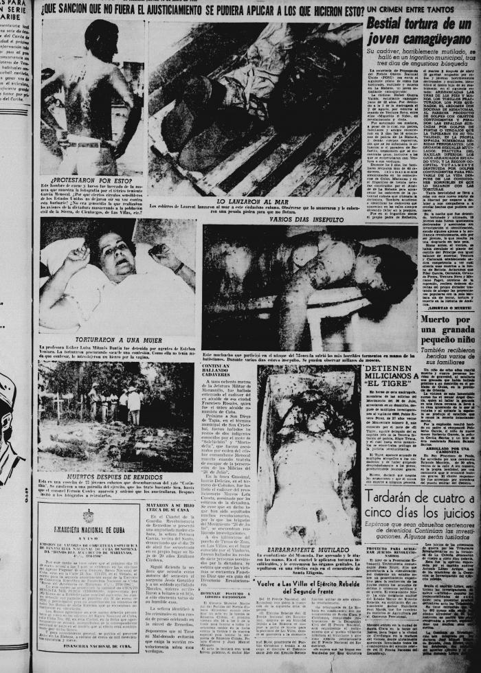 Fueron miles los cubanos asesinados por los criminales de guerra batistianos en todo el país. Desaparecían los cuerpos, los tiraban al mar, como a las mensajeras rebeldes Lidia Doce y Clodomira Acosta Ferrals; los enterraban en fosas comunes en los cuarteles militares o en zonas despobladas, para desaparecer los cuerpos.