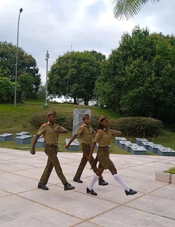 Estudiantes de la Escuela Militar Camilo Cienfuegos, de Contramaestre, realizaron la guardia de honor, junto a la losa de mármol que custodia los restos del Comandante de la Revolución líder del Frente, al que también rindierón tributo pobladores de la serranía.