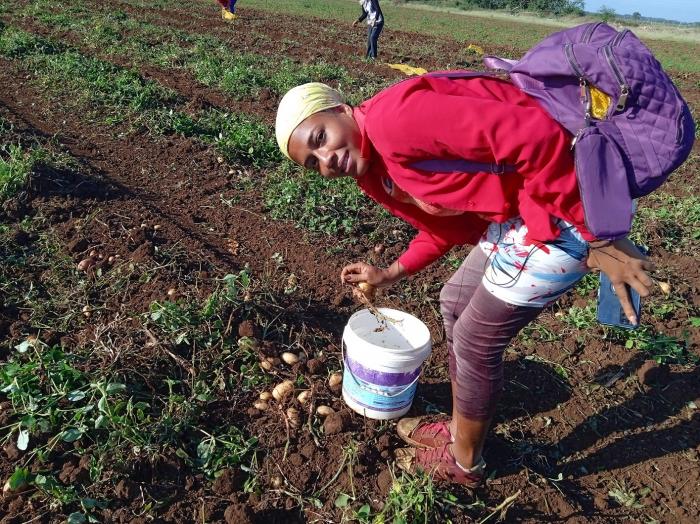 Entre las muchachas llegadas allí para la ocasión estaba Yohana Ulloa Domínguez, la joven santiaguera que llegó hace apenas seis meses a Horquita en busca de horizontes para su vida. Compartió que nunca trabajó antes en la agricultura, y por supuesto tampoco en la recogida de papas. Al principio pensó que no iba a adaptarse al rigor del campo, pero como hija de la tierra indómita al fin, aquí está demostrando que siempre se puede.