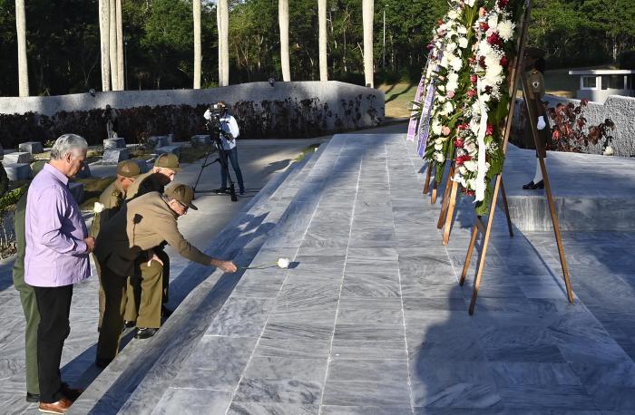 Con el ejemplo de quien no ha descansado ni un instante en esa lucha imperecedera por construir y defender la obra de la Revolución cubana, el General de Ejército avanzó hacia la Llama Eterna, la que arde, como él dijera en una ocasión, para «todos los combatientes de la libertad, inmolados o caídos heroicamente en este territorio a lo largo del proceso histórico que transcurre desde Hatuey hasta Fidel»; por «todas las tumbas dispersas en los montes y valles del Segundo Frente», y por «todos los que, sabiéndolo o no, cimentaron con su sangre nuestro presente y nos enseñan a ser capaces de seguir su ejemplo por las generaciones venideras». Allí dejó una rosa blanca.