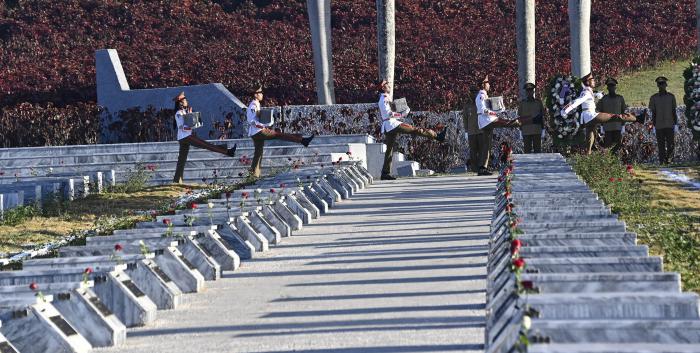 Los familiares de los combatientes acompañaron los osarios hasta los túmulos, mientras se escuchaban los nombres de los 40 guerrilleros.