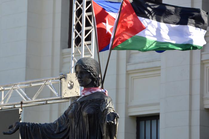 Allí estaba ella en la cálida tarde habanera, en un acto convocado por la Unión de Jóvenes Comunistas y la Federación de Estudiantes Universitarios en apoyo al pueblo palestino. También estuvo la profesora Belkis Yaisy Zulueta, que jamás llamó a ningún órgano represivo para desalojar a sus alumnos y expresó solidaridad para los familiares de las más de 34 000 víctimas, a los miles de heridos y desaparecidos en la Franja de Gaza.