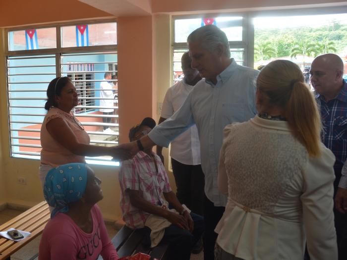 «Ustedes hacen un esfuerzo tremendo», expresó el Jefe de Estado a los profesionales de la Salud, quienes ostentan cifras admirables en lo que va de año, a pesar de las dificultades constructivas, y de otros problemas como el deficitario transporte sanitario de montaña: allí el policlínico ostenta cero en mortalidad infantil, y cero en mortalidad materna, además de una cifra bien baja en lo referente al indicador del bajo peso al nacer.