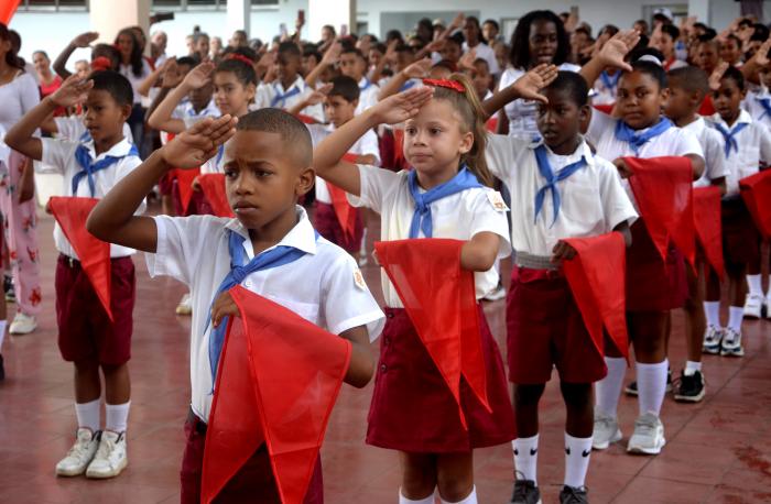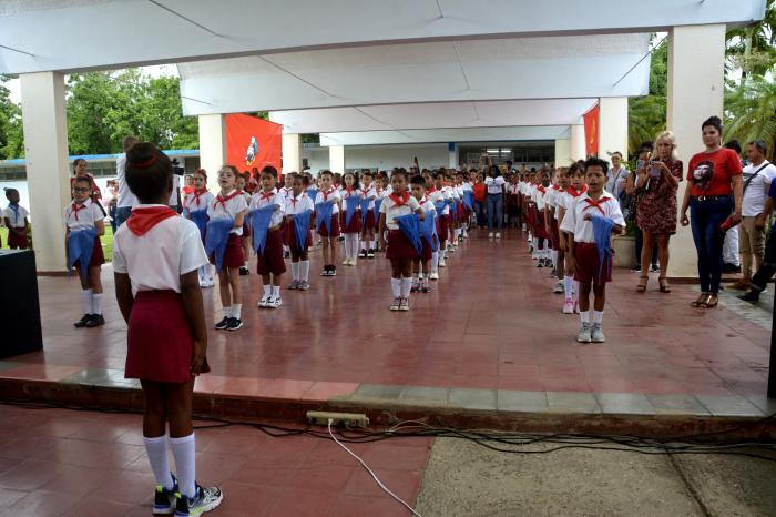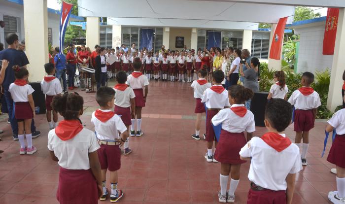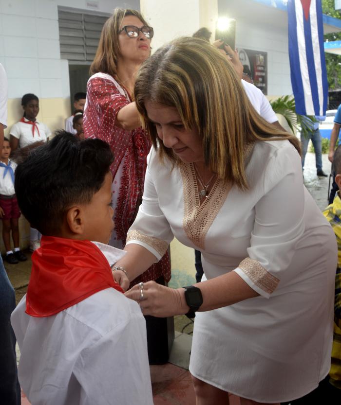 «Una vez anudada, la pañoleta se convierte en homenaje y en sentido del deber», dijo ante los niños y sus padres la presidenta nacional de la OPJM, Chabeli Arencibia Martell, quien estuvo presente en el matutino especial realizado en la escuela primaria Manuel Martínez Prieto, del capitalino municipio de Marianao.