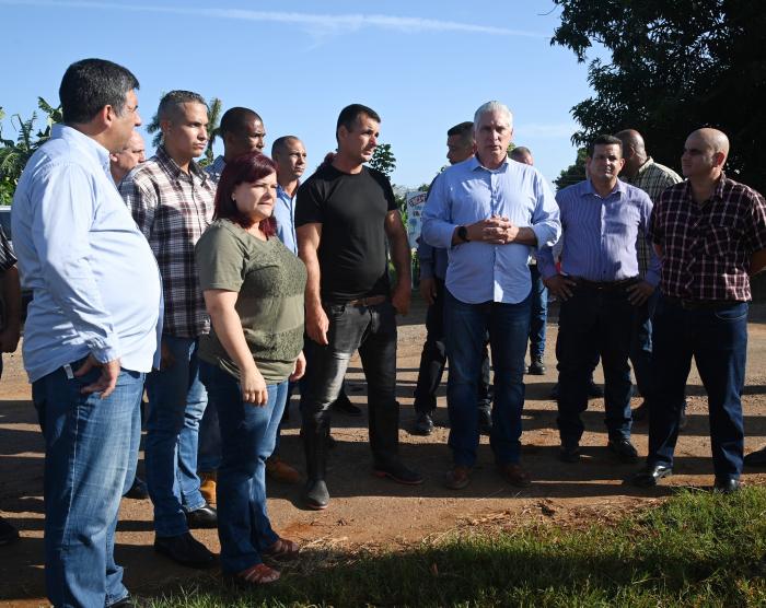 Acompañado por Humberto Camilo Hernández, jefe del departamento de Política de Cuadros del Comité Central; Yamilé Ramos Cordero, primera secretaria del comité provincial del Partido en Pinar del Río; Eumelín González Sánchez, gobernador del territorio, y las principales autoridades del municipio La Palma, Díaz-Canel ponderó que el proyecto agrícola La Miriam, sombrilla que da cobijo a Marbajita, sea un concepto montado para dar solución a la alimentación del pueblo con tierras y fuerzas propias.