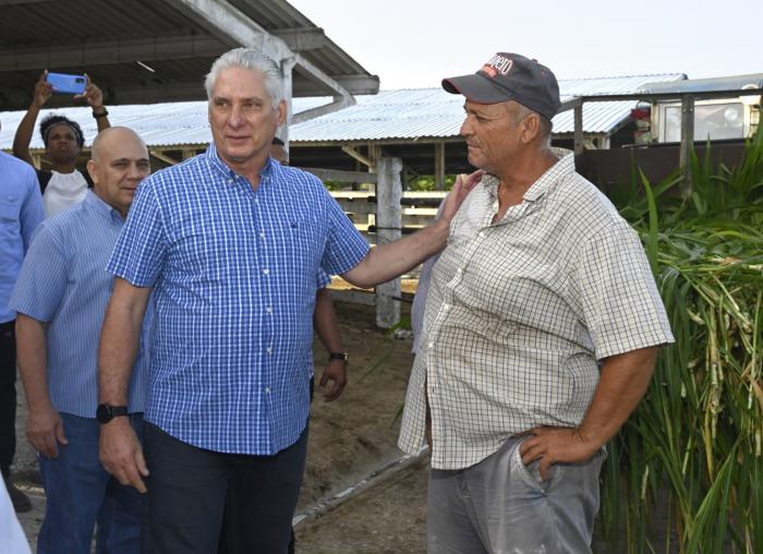 Poco después, el mandatario, acompañado por el miembro del Buró Político y secretario de Organización, Roberto Morales Ojeda, y por las máximas autoridades del Partido y del Gobierno en la provincia y el municipio, llegó a la vaquería Pradera Verde, perteneciente a la Empresa Agropecuaria Bacuranao.