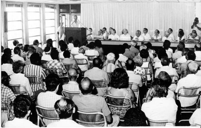 El 5 de julio de 1982 Nicolás Guillén estuvo en Granma. Ese día no fue como otros, en los cuales de manera habitual entraba apresurado y con miles de ideas plasmadas en cuartillas; pues el objetivo de la visita respondía a una invitación del colectivo del periódico para expresarle el respeto, la admiración y el amor que todos sentían por él al acercarse su 80 aniversario a lo que él correspondió con su habitual cortesía.
