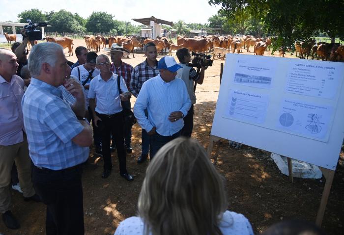 Un interesante punto de partida en la jornada de análisis fue lo que ha estado sucediendo, para bien, en la Empresa Agropecuaria La Cuba, del municipio de Baraguá. Intercambios incesantes con los productores han propiciado, entre otras realidades, un incremento notable de las producciones. Y al respecto, el Presidente Díaz-Canel expresó: «Ahora, con menos recursos, estamos recuperando cosas. El tema es de trabajo, de inteligencia, de participación colectiva, de uso de la ciencia. Y el tema es también de liderazgo».