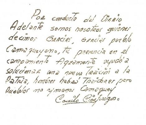 «Hombres habrá traidores, pero pueblos no y menos Camagüey» Camilo Cienfuegos