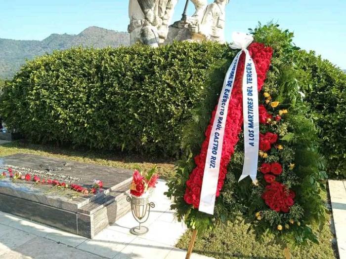 Ofrendas florales enviadas por el General de Ejército Raúl Castro Ruz, líder de la Revolución Cubana; por el Primer Secretario del Comité Central del Partido y Presidente de la República, Miguel Díaz-Canel Bermúdez; el presidente de la Asamblea Nacional del Poder Popular y del Consejo de Estado, Esteban Lazo Hernández, y una a título del pueblo de Cuba, fueron depositadas en el Mausoleo en el que reposan los restos de los combatientes, en la Loma de La Esperanza.