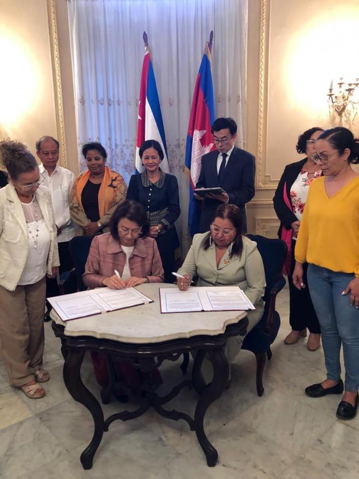 «Sus mujeres son muy fuertes y valientes, lo sabemos y lo confirmamos ahora» expresó Kantha Phavi, embajadora de los Asuntos de la mujer en el Reino de Cambodia, a su llega a la sede nacional de la Federación de Mujeres Cubanas (FMC), junto a la delegación que la acompaña, para la firma de un memorando de entendimiento encaminado a estrechar los lazos históricos y de ayuda mutua entre las féminas de ambos países.