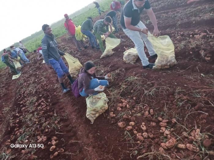 Desde el fin de semana anterior se venían realizando en todo el país jornadas de trabajo voluntario en las granjas agropecuarias del Minint en la recogida de papas y otras tareas en función de la producción de alimentos, una prioridad del Organismo, donde se fundieron jefes, oficiales, jóvenes militares, combatientes y civiles.