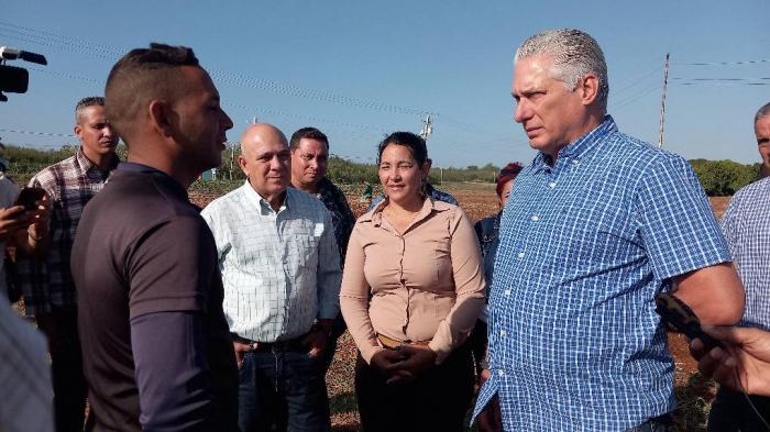 Díaz Canel socializó experiencias del logro de cultivos en secano a la vez que elogió el trabajo de este bloque productivo perteneciente a la Empresa Agroindustrial Municipal, de Campechuela.