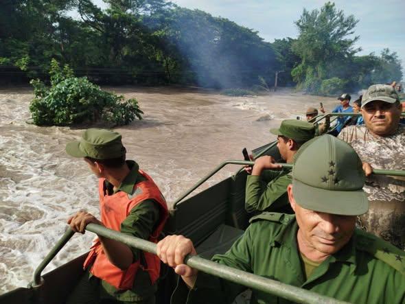 Se mantienen los principales jefes de la Región Militar Las Tunas en Guamo, municipio de Río Cauto,en cooperación con el ministerio del Interior y las autoridades del Consejo de Defensa, rescatando personas en áreas inundadas por la crecida del Río Cauto.