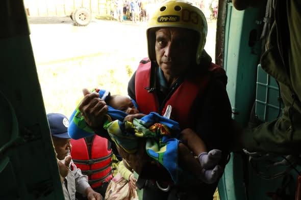 Pobladores en situación de riesgo continúan llegando a salvo en los vuelos de rescate. Nada detiene la voluntad de salvar de estos hombres y mujeres que trabajan sin descanso.