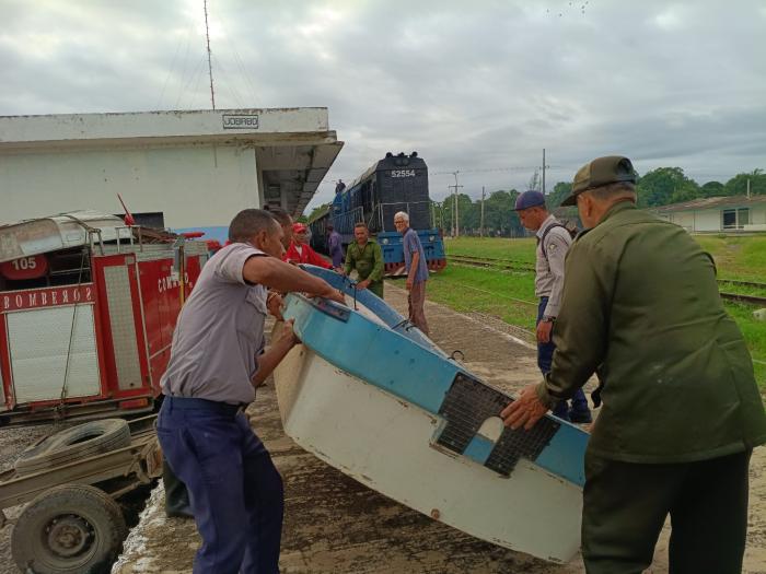 Esta mañana hemos estado de manera coordinada con las autoridades de Las Tunas y Granma, asegurando la evacuación vía ferroviaria, de población que se encuentra en las inmediaciones del poblado de Guamo del Consejo Popular Río Cauto, de la provincia Granma, seriamente afectado por las inundaciones.