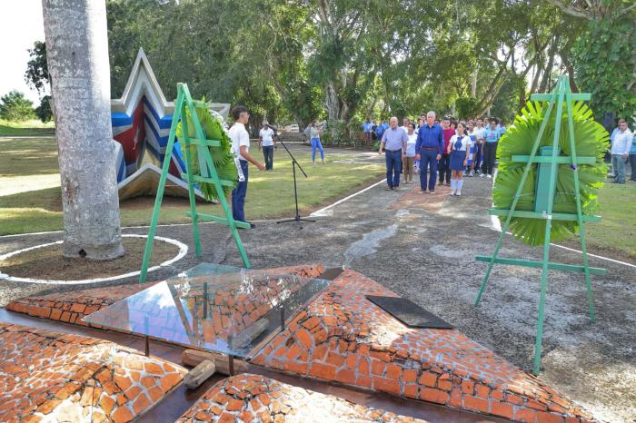 Panchito «es una expresión, es un símbolo de lealtad, es un símbolo de fidelidad, pero también es un símbolo de coraje y valentía». Y estas —enfatizó Díaz-Canel— son cosas que tenemos que tener muy claras; saber «cómo esos hombres estaban dispuestos a dar la vida por la independencia, por la libertad del país, porque en estos tiempos que nos agreden tanto, en estos tiempos donde vemos un despliegue militar ofensivo tremendo por parte del ejército y el gobierno de los Estados Unidos en el área del Caribe, atentando contra la Revolución venezolana, pero atentando contra la paz y la seguridad del área, uno también tiene que empezar a sacar su visión y su convicción de que por esta Revolución estamos dispuestos a dar hasta la vida, y las razones por las que estamos dispuestos a dar nuestra vida, entre otras, tienen que ver con el ejemplo de esos héroes y de lo fue capaz de hacer Panchito con 20 años de edad, como han sido capaces de hacerlo otros, incluso con menos edad, en nuestra historia, y como seremos capaces de darla, ustedes y nosotros».
