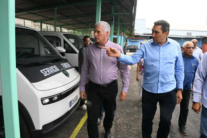 El recorrido por la ciudad concluyó en la Comercializadora Axess, del Ministerio de Transporte (Mitrans), ubicada en Tulipán y Colón, en el municipio Plaza de la Revolución. El motivo de la visita al centro fue poder apreciar la flota de 15 carros eléctricos, nuevos, destinados al servicio necrológico en la capital.