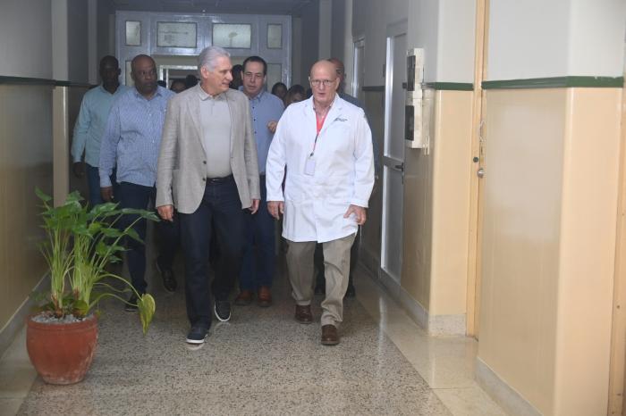 «Es un honor que usted nos visite», dijo Balmaseda al recibir al Jefe de Estado en la entrada principal del Fructuoso, quien en su recorrido estuvo acompañado del ministro de Salud Pública, José Angel Portal Miranda, así como de otros funcionarios de ese organismo, y de otros dirigentes. En presencia de un nutrido grupo de profesionales de la institución, el director general del centro fundamentó, junto con otros colegas a los que daba espacio para hablar, cómo es que el hospital está inmerso en el proceso de digitalización.