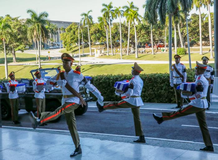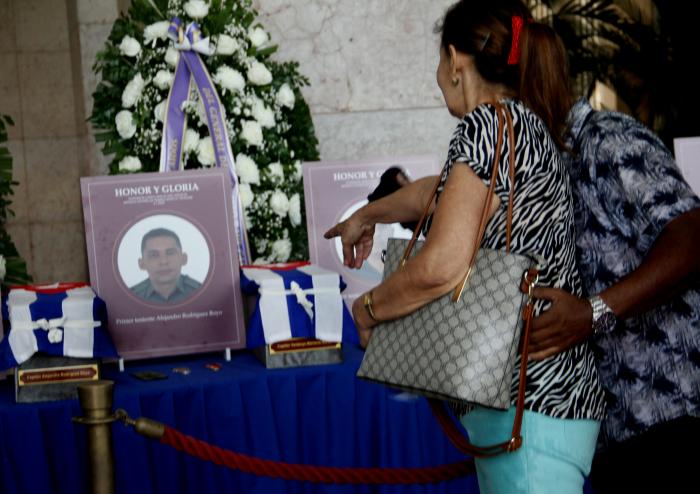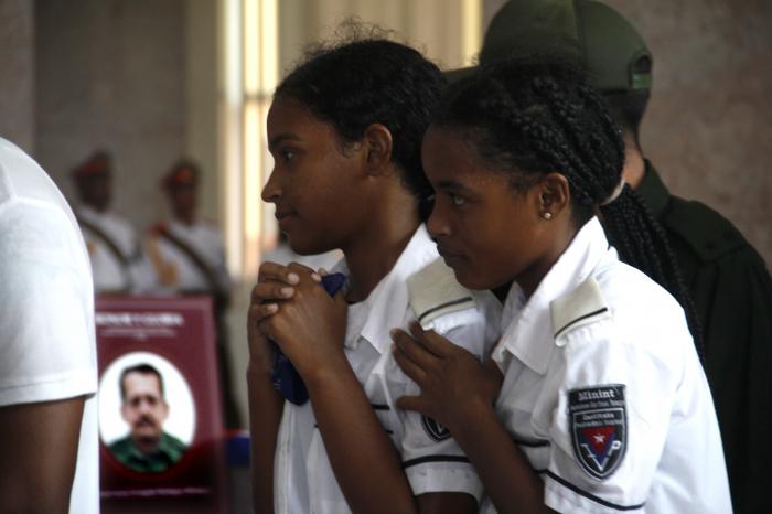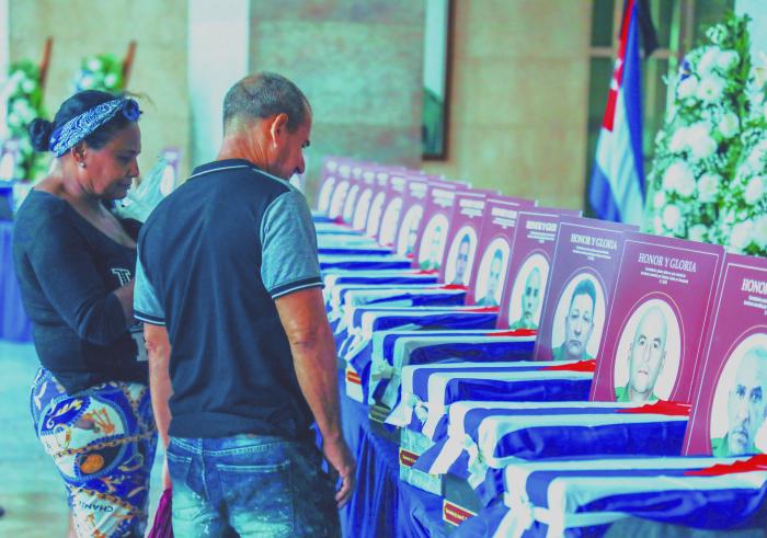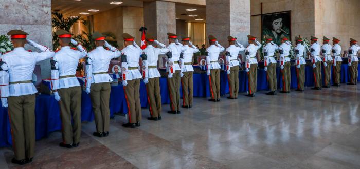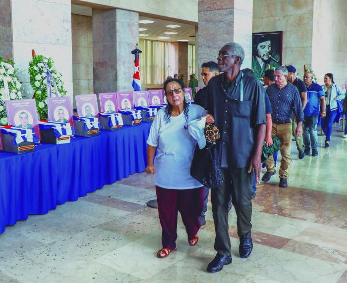 La sede del Ministerio de las far recibe de a poco la fila interminable de pueblo. En el ambiente, una solemnidad que emociona. Alguien deposita flores, otro se lleva la mano al pecho, los soldados presentan su saludo militar; algunos bajan la vista en señal de respeto, y de dolor y, los más, miran de frente, con respeto, a las imágenes de los mártires; una mujer pasa tarareando el Himno; una madre y su hijita se acercan cautelosas, señalan a uno y otro, y otro más… Tienen memoria los hijos de esta Isla: rodilla en tierra se defiende –así sea al precio de la vida– aquello en lo que se cree. Honrar, entonces, se siente imprescindible, con la certeza de que la verdadera gloria está en no claudicar.