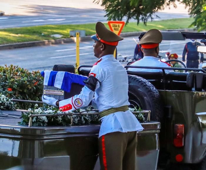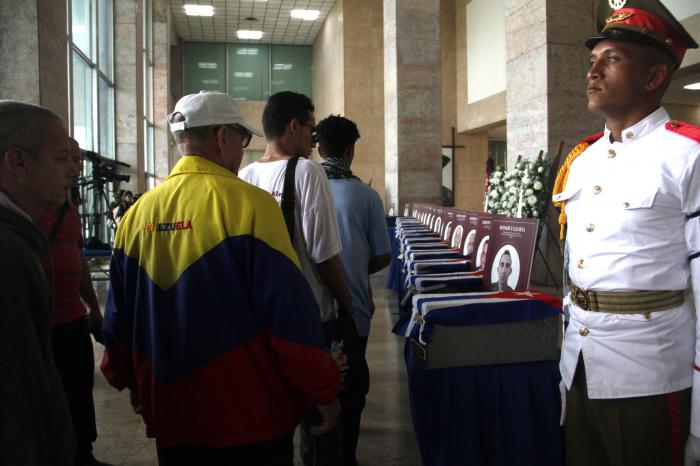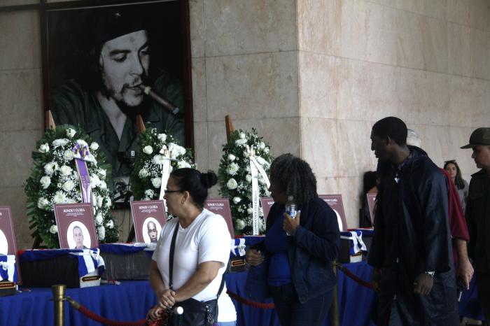 Coronada con un lazo negro en la cima del asta, abrazó la bandera de la estrella solitaria al pueblo capitalino en el que, sin duda, estuvo Cuba toda. Hubo banderas también en muchas manos, y sobre las urnas, como glorioso manto para los restos de los 32 héroes.