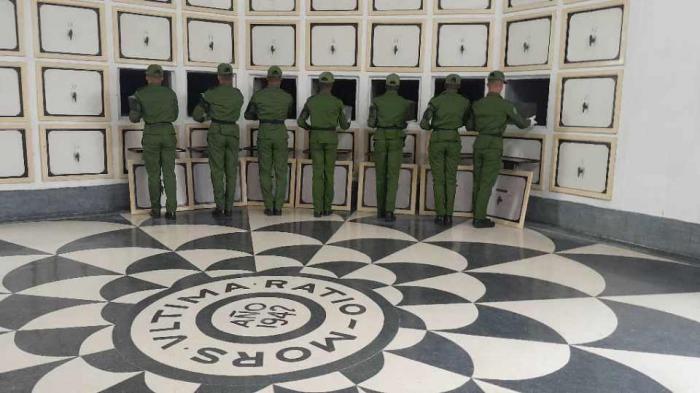 Ofrendas florales a nombre del Líder al frente de la Revolución, General de Ejército Raúl Castro Ruz; el Primer Secretario del Comité Central del Partido y Presidente de la República, Miguel Díaz-Canel Bermúdez; de las Fuerzas Armadas Revolucionarias; el Ministerio del Interior; de los familiares y de la Asociación de Combatientes de la Revolución Cubana fueron colocadas en los predios del Panteón.