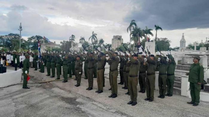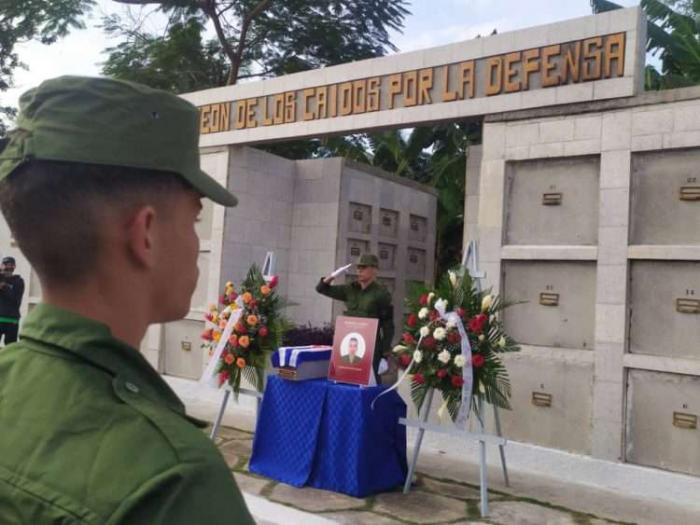 La ceremonia de inhumación de los restos del combatiente, miembro del Ministerio del Interior, se efectuó en horas de la tarde en el Panteón de los Caídos por la Defensa en el cementerio local.