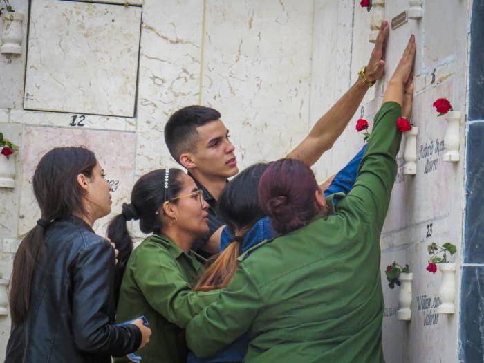 Pinar del Río.-Yoel, el padre, apoya su mano en la tapa del nicho y balbucea algo incomprensible. Sus dos hijas también lo hacen antes de romper en llanto.