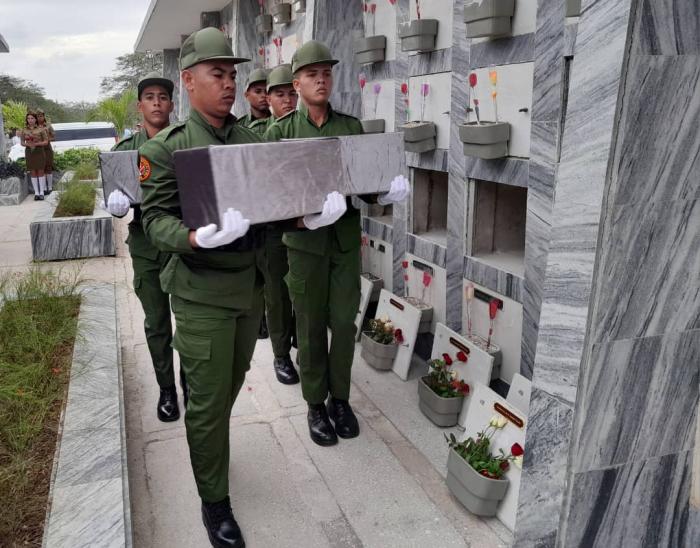 El acto solemne y ceremonia militar no constituyó «un adiós ni un acto de despedida, porque ustedes seguirán viviendo en el alma de la Patria», como expresó la miembro del Buró Ejecutivo del Comité Provincial del Partido, Niurka Bell Calzado, ante familiares, compañeros y una representación de las organizaciones políticas, sociales, de masas al dar el último adiós a estos nuevos integrantes de la pléyade de héroes cubanos.