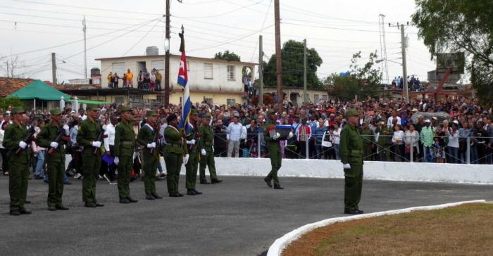 Fue el cierre de una jornada para exponer compromisos con la Patria. Esencialmente uno, proclamado por las salvas de fusiles de un pelotón de ceremonia integrado por combatientes de las Fuerzas Armadas Revolucionarias y del Ministerio del Interior: ¡Frente al invasor la orden de combate siempre está dada!