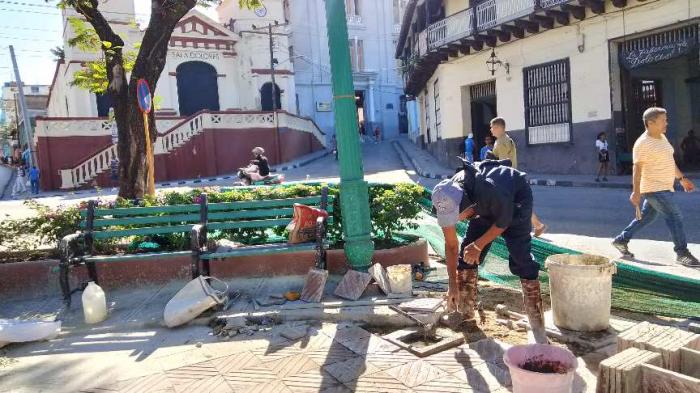 En tres plazas históricas de la Ciudad Héroe –los parques Céspedes y Dolores, y la Plaza de Marte– se ejecuta un proceso de reanimación, que también incluye el entorno, «con el objetivo de que luzcan sus mejores galas, no solo por su valor patrimonial sino por lo que significan para los santiagueros y para quienes visitan la urbe».