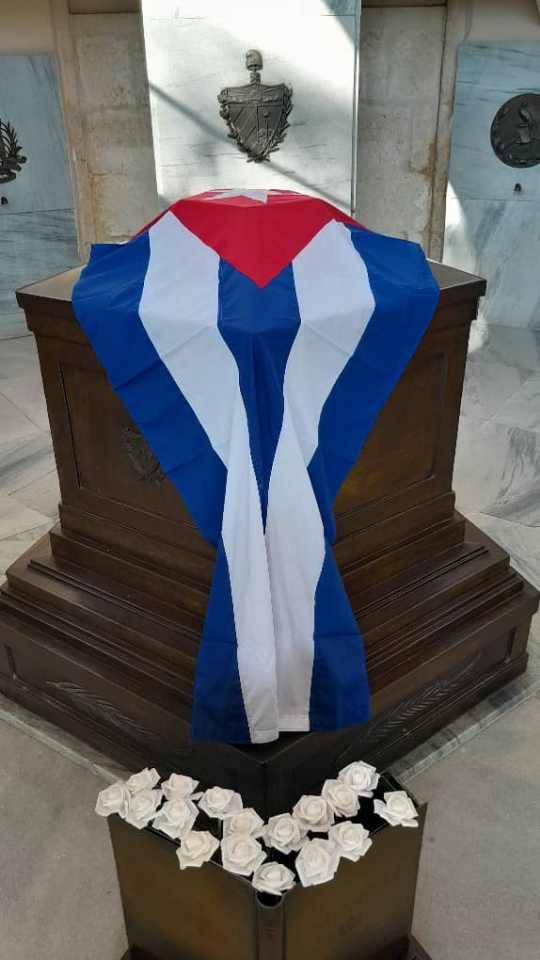 Con melodía a los Versos Sencillos, estudiantes de la Escuela Militar Camilo Cienfuegos de Santiago de Cuba colocaron las ofrendas florales enviadas por el Líder al frente de la Revolución, General de Ejército Raúl Castro Ruz; el Primer Secretario del Comité Central del Partido y Presidente de la República, Miguel Díaz-Canel Bermúdez; y una en nombre del pueblo de Cuba, en este sagrado lugar, ubicado en el cementerio patrimonial Santa Ifigenia.