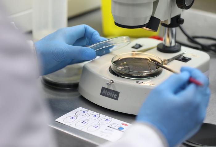 Es 2020, plena pandemia. Manos gráciles colocan con precisión la muestra en las placas de pocillos. El software procesa los datos, arroja el resultado. Dudan un poco, miran de nuevo por el microscopio. Ahora sí, lo confirman.