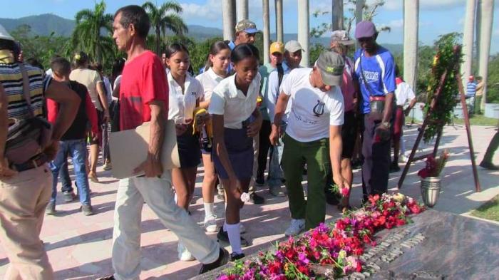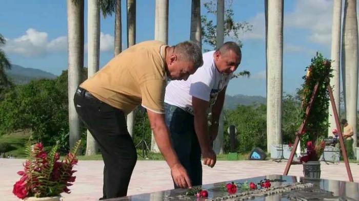 Una ofrenda floral, a nombre del pueblo de Cuba, fue depositada en los predios del monumento que corona el Mausoleo de los Héroes y Mártires del III Frente Oriental Dr. Mario Muñoz Monroy, del que Juan Almeida Bosque fue jefe y fundador, y donde se atesoran sus restos desde el 2009.