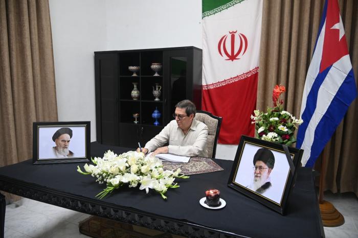 El Primer Secretario del Comité Central del Partido Comunista de Cuba y Presidente de la República, Miguel Díaz-Canel Bermúdez, acudió al mediodía de este jueves a la sede de la embajada de la República Islámica de Irán en la Isla para firmar el Libro de Condolencias abierto en honor al Gran Ayatolá Seyed Alí Jameneí.