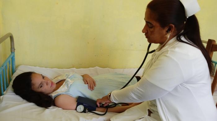 En el hogar materno Mariana Grajales, de la ciudad de Bayamo, el andar pausado de las embarazadas se mezcla con el sonido rítmico de un esfigmomanómetro y el ir y venir de una mujer de bata blanca. Es Yudelsis Díaz Castro, de 44 años, de los cuales 23 ha consagrado a la enfermería.