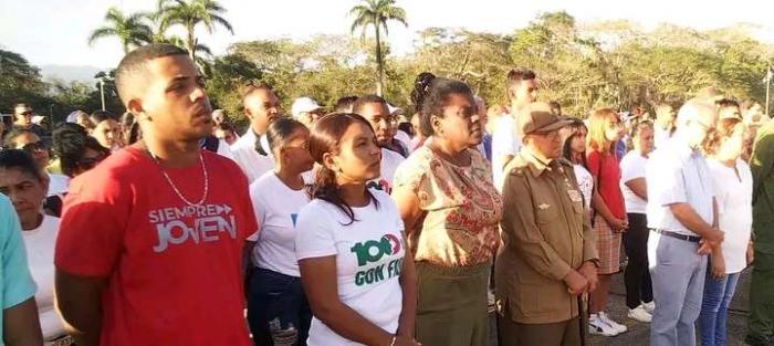 A propósito del 68 aniversario de la fundación del II Frente Oriental Frank País García, el pueblo de la localidad se dirigió hasta el impresionante Mausoleo de los Héroes y Mártires, donde la llama eterna, las palmas reales y las califas rojas -que simbolizan la sangre derramada en las montañas-, parecen estar al son de las melodías interpretadas por la Heroína de la Sierra y el Llano, Vilma Espín Guillois, que se escuchan hasta en la loma de Mícara que domina el histórico lugar.