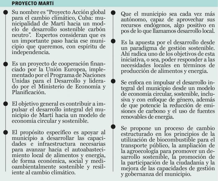 En el municipio de Martí, sin embargo, hay gente esperanzada con que algo cambie este difícil panorama. En medio de tantas dificultades, el centro del interés reside en la puesta en marcha de cinco ómnibus a base de biometano, alternativa energética limpia y renovable, conseguida a partir de residuos orgánicos de origen local.