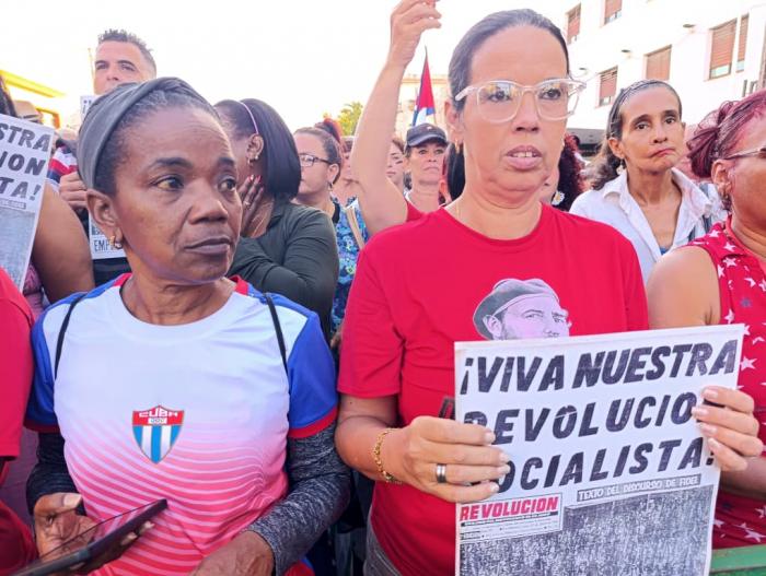 Entre tanto, en la propia esquina de 23 y 12, Leanet Proenza del Hoyo, miembro del Consejo de la Federación Estudiantil Universitaria de la Universidad de la Habana, aseguró que este pueblo lo integran revolucionarios incansables y rendirse nunca será una opción.