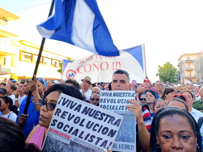 -Desde esta histórica tribuna, donde todavía resuenan las palabras de Fidel convocando al pueblo a buscar su sitio para el combate por venir, y donde hoy rendimos un merecido tributo y homenaje a los héroes y los mártires de aquel día en que la Patria vistió decidida el uniforme miliciano, convocamos a un movimiento nacional a internacional de solidaridad, que lleve a cada rincón del planeta la verdad de Cuba, el sufrimiento del pueblo por acciones del bloqueo, y guerra económicamente multidimensional, agravada por el bloqueo energético, lo que califica de genocidio por los niveles extremos de privaciones a los que estamos sometidos todas las cubanas y todos los cubanos.