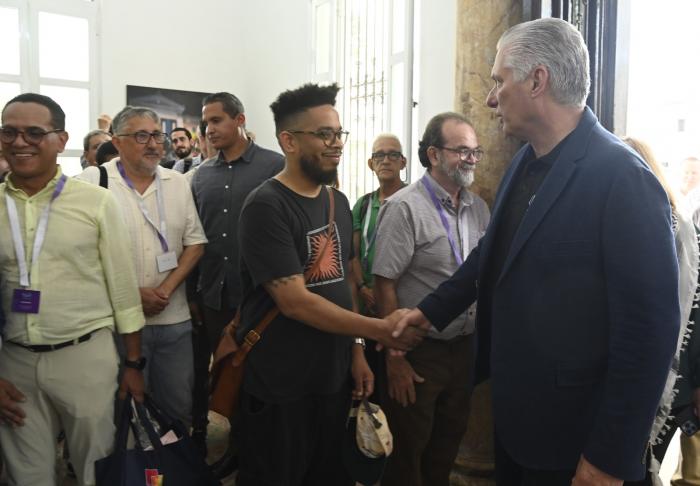 El Jefe de Estado asistió a la apertura del espacio creativo, asentado en una casa del Vedado que fue restaurada para dotar al Coloquio de un lugar donde converjan física y virtualmente todas y todos los expertos en comunicación, activistas, periodistas y organizaciones sociales que sueñan y trabajan por ese mundo mejor que es posible.