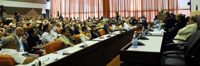 La discusión de los dictámenes de las comisiones de Arte, Mercado e Industrias culturales; Ciudad, Arquitectura y Patrimonio; y Estatutos, reglamentos y reclamaciones, tuvo lugar durante la horas de la mañana de este sábado, en la segunda sesión plenaria del VIII Congreso de la UNEAC, presidida por Miguel Díaz-Canel Bermúdez, Primer vicepresidente de los Consejos de Estado y de Ministros; Julián Gonzaléz Toledo, ministro de Cultura; y Miguel Barnet, presidente de la Comisión Organizadora.