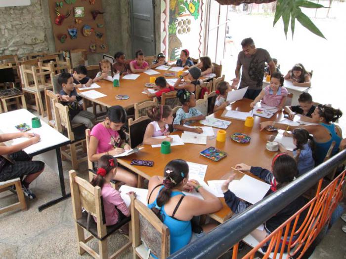 “Los talleres comienzan en septiembre y terminan en julio. El de artes plásticas, que es nuestro taller insignia, cuenta con dos niveles, puesto que hay niños que llevan varios años y otros que son muy habilidosos. Hace dos años incorporamos otro taller que se llama Cámara Chica, relacionado con el mundo audiovisual; también están los de manualidades y muñequería, que comenzaron destinados a las personas de la tercera edad pero ya es para todo el mundo, porque se han incorporado muchas de las madres que venían a acompañar a los niños; el de música impartido por instructores de arte de Pinar del Río, que tienen vínculos familiares con la comunidad; el de teatro; y el de baile popular para niños, entre otros.