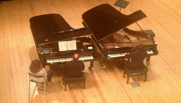 En su presentación estuvo acompañado al segundo piano por su padre Victor Rodríguez, prestigioso pianista cubano, premio Tchaikovski, quien se encuentra impartiendo clases como profesor en Portugal.