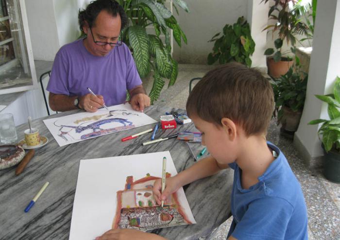 Lo periodísticamente nuevo es que uno de los pintores contemporáneos cubanos más notables, Juan Vicente Rodríguez Bonachea, justo antes de su temprana muerte tenía entre sus proyectos más avanzados una muestra de dibujos hechos a dos manos con otro singular creador, Diego Gejo, de seis años de edad.